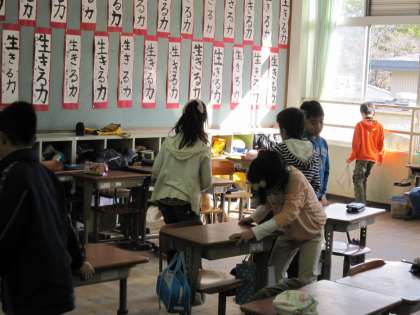 掃除時間には,協力しながら分担場所をきれいにしています。