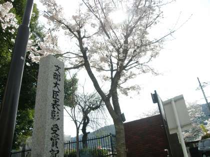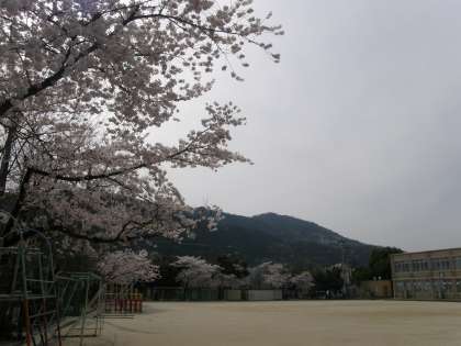 今日はあまりに天気がよかったので,職員会議の後でふらりとカメラ片手に校内の桜を撮ってみました。桜の花の向こうは風情たっぷりの春霞,そして美しい山々…。もったいないような景色に感激しました。こんな環境の中で勉強できる子どもたちは幸せですね。