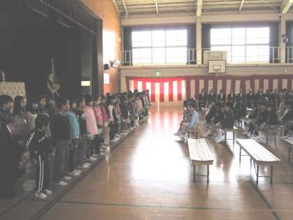 式の中で,2年生が在校生を代表して,お迎えの言葉とけんばんハーモニカの演奏で新入生を迎えました。