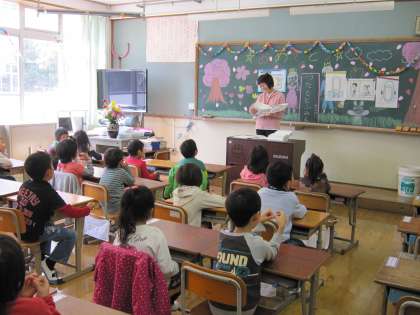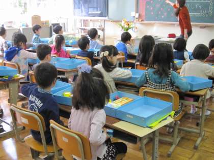 この日は,お道具箱の使い方をみんなで確かめたり,絵本の読み聞かせを聞いたりしました。