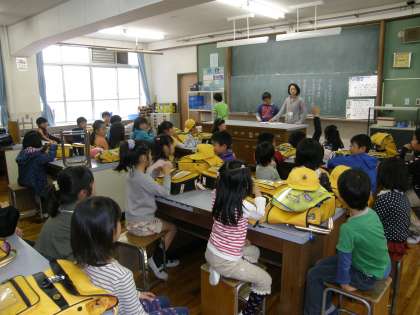 ブロック別集会がありました。主に集団登校の安全についての確認です。「集合時間を守ること」「低学年に配慮しながら歩くこと」「危険なことをしないこと」など,いろいろな話題がありました。