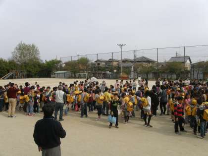 運動場に集合した時に二つのことを話しました。まず,『自分の命は自分で守ること』そして,『お世話になっている保護者や見守りたいの方に感謝すること…あいさつをすることで,その感謝を表現すること』です。