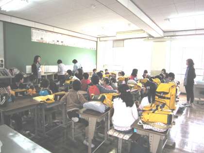 PTA地域委員の方々も参加してくださり,子ども達に登校のときに気をつけることを話してくださいました。