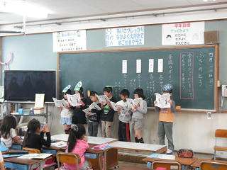 2年生は「ふきのとう」の音読発表会をしました。登場人物の様子が伝わるように工夫して音読しました。