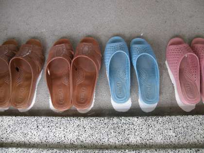 履物がそろっているのはとても気持ちうがいいものです。4月以降見ていると,トイレのスリッパがあちらこちらに散らばっている状態が多いのがとても残念です。