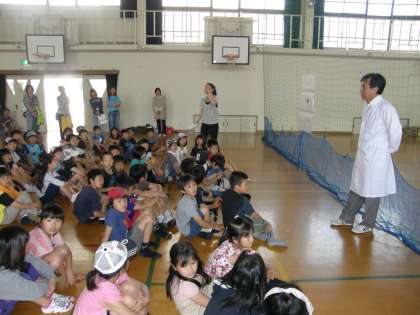 いよいよ始まりました。体育館では「中川でんじろう先生のモーレツ科学教室」などがあります。白衣をまとったでんじろう先生が「空気砲」などの実験を楽しく見せてくださいます。さて,どんなふうになりますやら…。