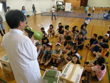 空気砲やリングウイングで体育館が盛り上がっていました。自分が想像しているイメージとのギャップが楽しそうです。