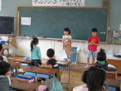 朝の会で,健康観察をしたり朝のスピーチをしたりしています。