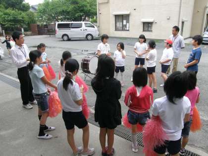 応援団は運動会の華。大きく元気な声と思い切った動きが要求されます。まだまだ先だと思っていた運動会もあと10日余りに迫りました。6年生を中心に5年生と4年生が協力しながら頑張っていますが,「これでよし!」というところまではあと一歩のようです。担当の先生からのアドバイスには素直に耳を傾けて聞いていますので,きっと本番ではやってくれると思います。全校のお手本になるように期待をしながら見守っていきます。