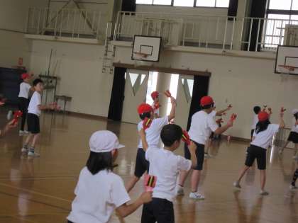 練習を重ねる4年生。なるこの音が,そろい始めています。今から運動会当日が楽しみです。