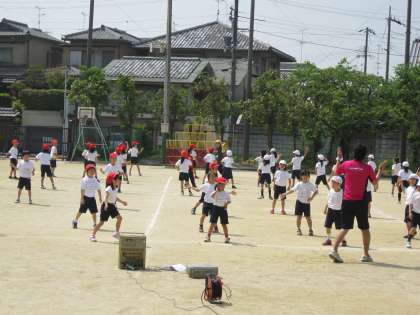 みんながそろってリズムに乗って演技しようと練習に励んでいます。