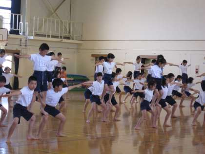 今日も体育館で練習をしていました。しーんとした中で,「曲のここではこうするよ。」という指示を聞いた後,実際に扇などの業(わざ)に取り組んでいました。