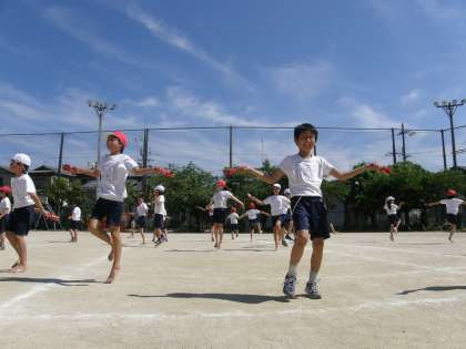 運動会まであと1週間の今日の午後,4年生が運動場で「ええじゃないか!2013」の練習をしていました。鳴子を使っての踊りですが,暑い中どの子も真剣に頑張っていました。集中力の切れやすい状況ですが,「やればできるのだなぁ…」と思いながらシャッターを切りました。