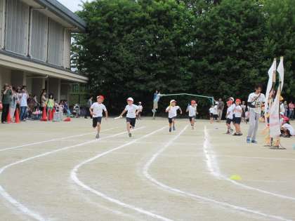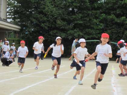 バトンパス練習の成果がだせました。最後は接線になり大いに会場を沸かせました。