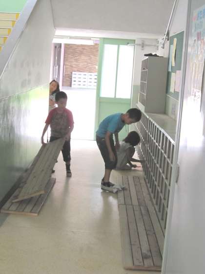 中校舎の入り口担当の子を見ていると,下駄箱のところのすのこ板をのけて下をはき,すのこ板を元に戻していました。すのこ板の板には,よく砂や土がたまります。しっかりと掃除をしていたので,うれしくなりました。