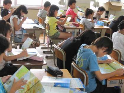 自分の住んでいるところと海津市を比べてみようといわれ,地図で京都市を探す子ども達ですが,自分の住んでいるところを探すのには苦労している子が多かったです。