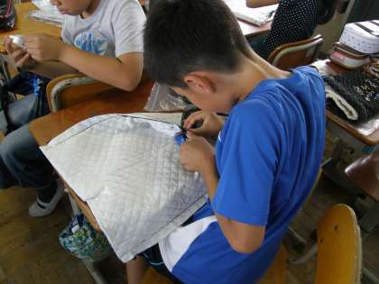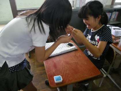 一人一人見ているといろいろと見えてきます。少しぐらいていねいさは犠牲にしても…と考えている子もいれば,職人さんのようなこだわりをもって一心に打ち込んでいる子もいます。どんなふうに仕上がるのでしょうね。