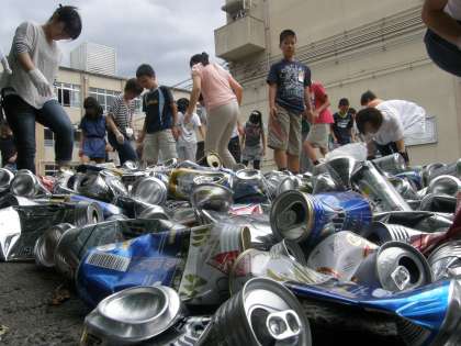 今日は嵐山東小名物「アルミ缶踏みの日」。清涼飲料水やビールがおいしい季節になり,先月よりもずいぶん多い気がします。