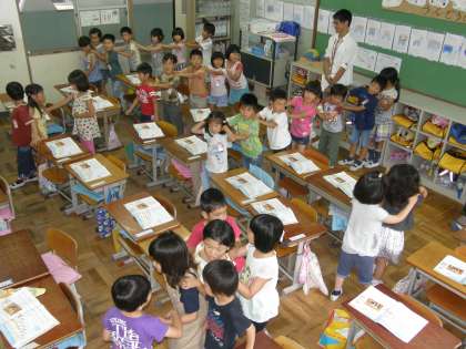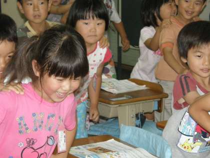 「ジェンカのうたで リズムにのって おどろう」の授業でした。オールドファンなら坂本九ちゃんの歌でおなじみのあの「ジェンカ」です。