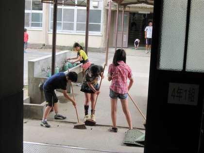 靴箱の中をきれいにする子達や校舎の出入口をきれいにする子達などみんなで使うところをきれいにしてくれています。