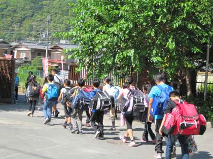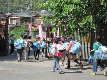 出発式を終えた68名の子ども達は,見送りのおうちの方々や教職員に見送られて,出発していきました。
