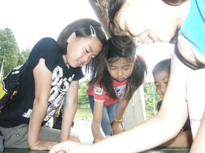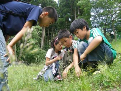 一生懸命,虫や鳥の羽根を探しているグループがありました。そう言えば今日の山の家でのめあては「協力」でしたね。いい感じですよ。