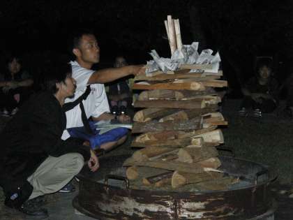 その後,かなり長い「沈黙」があり,薄暮の空がだんだん漆黒の闇に近くなっていきます。この「沈黙」というのがなかなか素晴らしいのです。薪のパチパチはぜる音,カエルの鳴き声,時たま聞こえる山の家の署員の方が運転する軽トラックのエンジン音…。