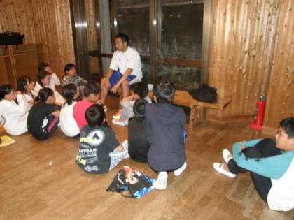 1日の最後はリーダー会議。今日の反省や明日の連絡事項などを班長に伝えます。