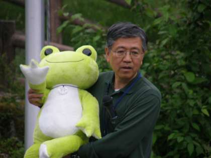 4校(音羽川・梅小路・西京極西・嵐山東)合同の朝の集いがありました。山の家の職員の方がカエルの人形を使ってのユニークな腹話術を披露してくださいました。