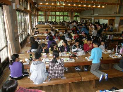 いよいよお楽しみの食事です。こんな感じの大食堂でみんなでワイワイいただきます。
