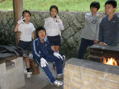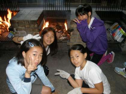 かまどの前でハイポーズ!