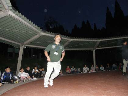 オープニングでは景気づけで走り回る人が登場!山の家の人ではありません。