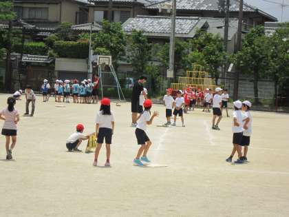 打ったり投げたりするのに慣れている子とそうでない子とがいます。この学習の最後には,みんな上手に打ったり投げたりできるようになるように学習をしていきます。