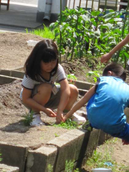 水をやったり雑草を抜いたりして世話をしている子ども達です。