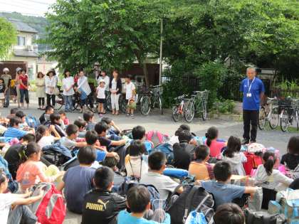 続いて,学校長より「五分前行動やあいさつなど多くのことを学んだ君たちです。山の家で学んだことをこれからの学校生活で活かしていかないと,意味がありません。しっかりと活かしていきましょう。おうちで自分たちが学んだことをいっぱいお話しましょう。」と話しました。