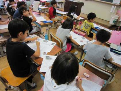 この日は,すずめのくちばしについて考え,プリントに書き込んでいました。