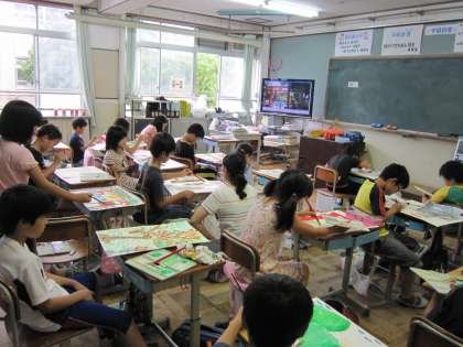 子ども達は,写真を見たり思い出したりしながら,色をつけていました。