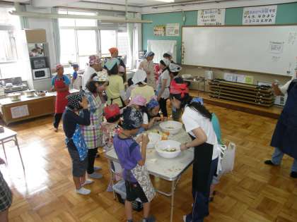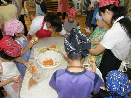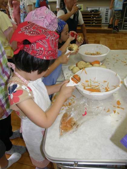 お待ちかねのカレー作り。みんな器用(?)な包丁さばきに見とれていました。
