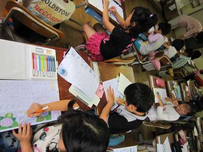 今日は,がぎぐげごなどの濁音や半濁音の練習をしていました。