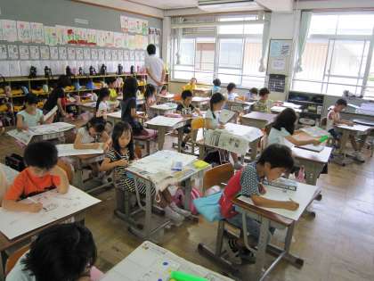 2年生は,先日から図工で「たのしいこと みつけた」に取り組んでいます。