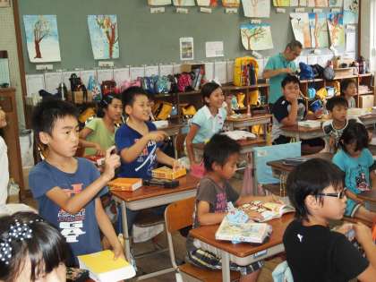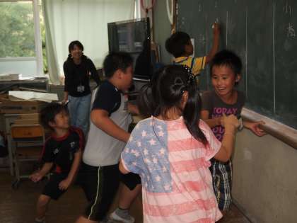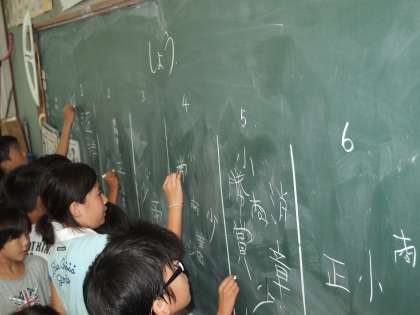 4年1組で盛り上がることをやっていました。先生が黒板にひらがなを書きます。その発音と同じ漢字をたくさん書き出し,多い班が勝ちというものです。「しょう」という漢字の数で競っていました。