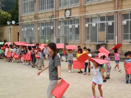 10時前には全員が運動場に出てきました。