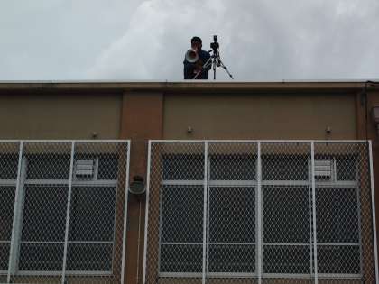 業者の方の屋上からの指示を受けて写真撮影をしました。この写真は後日販売用として職員室前に掲示します。希望される方はどうぞご購入ください。またご案内いたします。