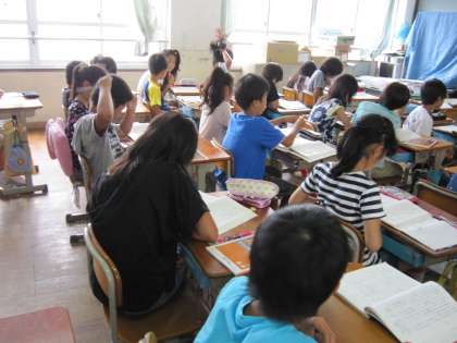 この教材文は長く,子ども達にとってはじめて聞く言葉やどう読むのか悩む漢字が出てきます。そのため,今日の5年2組では1ページごとにわからない言葉や漢字はないかと確かめていました。