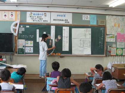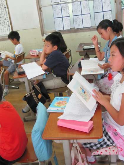今日は,「お父さんはどんな願いをこめて一輪のコスモスをゆみに渡したのだろう」というめあてをもって学習していました。