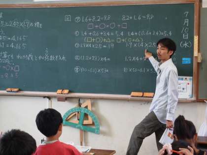 数式に抵抗なくなじむことはとても大切なことです。5年生は「式と計算」の学習をしており,工夫してやっていくと簡単にできるよということを習っていました。加減乗除の優先順位や( )の使い方など,今のうちに正しい解答手順をマスターしてほしいですね。