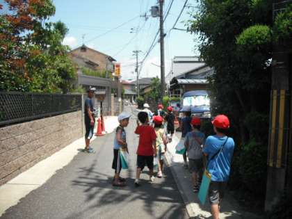 保護者の方や地域の方の力をお借りして,2年生が52名が10個のグループに分かれ,地域のお店や教室,お寺の見学をしてきました。今日は天気がよく暑かったので子どもたちは疲れて帰ってきましたが,大変充実した探検ができたようです。これからの学習で調べてきたことをまとめていきたいと思います。