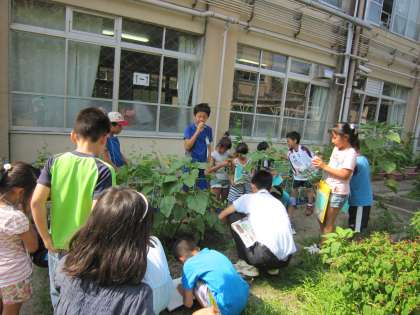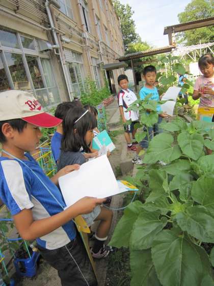 3年生は,花壇でひまわりなどを育てています。