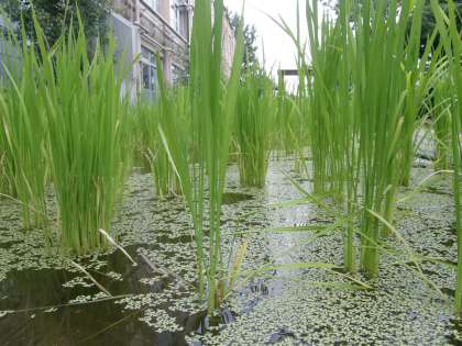 5年生の田んぼの稲はもう30センチくらいになったでしょうか。ついこの前田植えをしたところなのに…。驚きです。