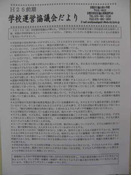話し合いの内容をまとめた「学校運営協議会だより」を明日配布させていただきます。どうぞご覧ください。
